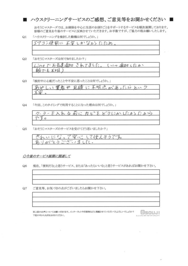 Q5:おそうじマスターズのサービスを受けてどう思いましたか?