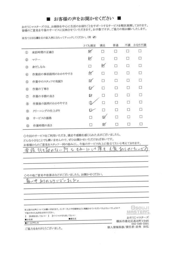 普段行き届かない所をきれいにして頂き大変ありがたいです。