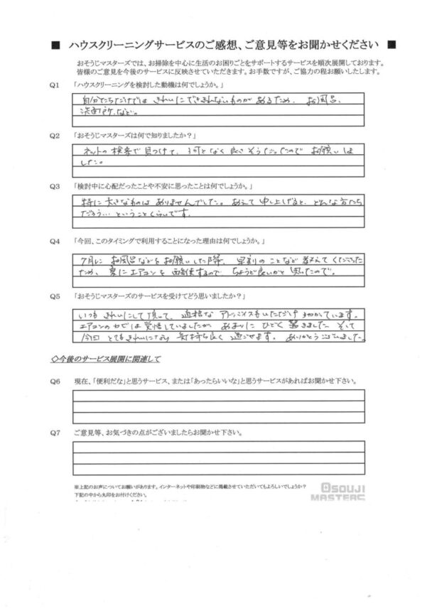 Q5:おそうじマスターズのサービスを受けてどう思いましたか?