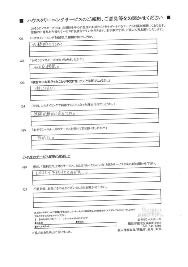 Q5:おそうじマスターズのサービスを受けてどう思いましたか?