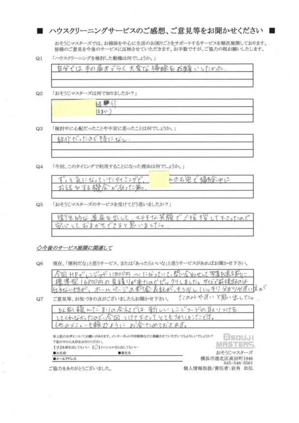 ずっと気になっていたタイミングで、〇〇さんのお宅で掃除中にお話をする機会があった為
