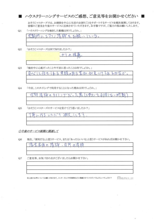 Q5:おそうじマスターズのサービスを受けてどう思いましたか?