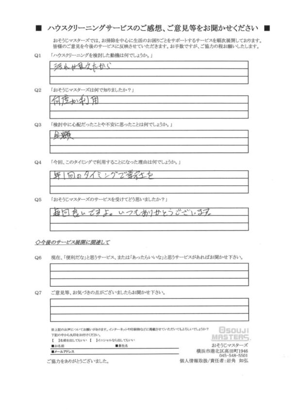 Q5:おそうじマスターズのサービスを受けてどう思いましたか?