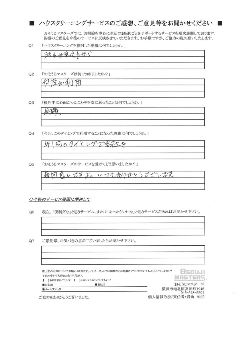 Q1:ハウスクリーニングを検討した動機は何でしょうか?