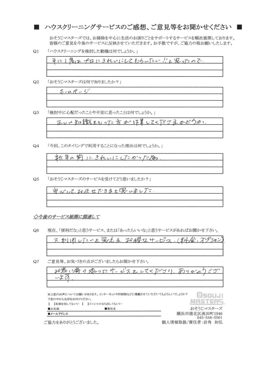 Q5:おそうじマスターズのサービスを受けてどう思いましたか?