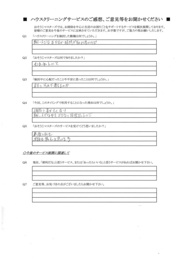 Q5:おそうじマスターズのサービスを受けてどう思いましたか?