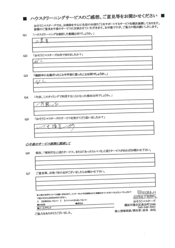 Q5:おそうじマスターズのサービスを受けてどう思いましたか?