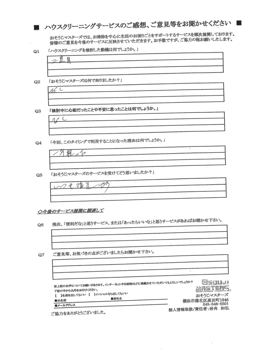 Q1:ハウスクリーニングを検討した動機は何でしょうか?