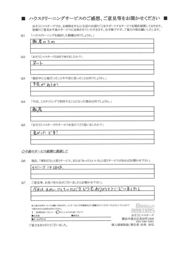 Q5:おそうじマスターズのサービスを受けてどう思いましたか?