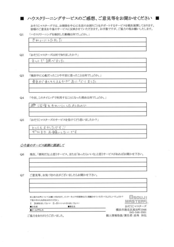 Q5:おそうじマスターズのサービスを受けてどう思いましたか?