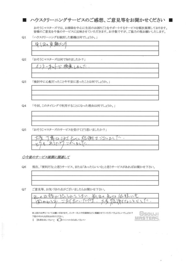 Q5:おそうじマスターズのサービスを受けてどう思いましたか?